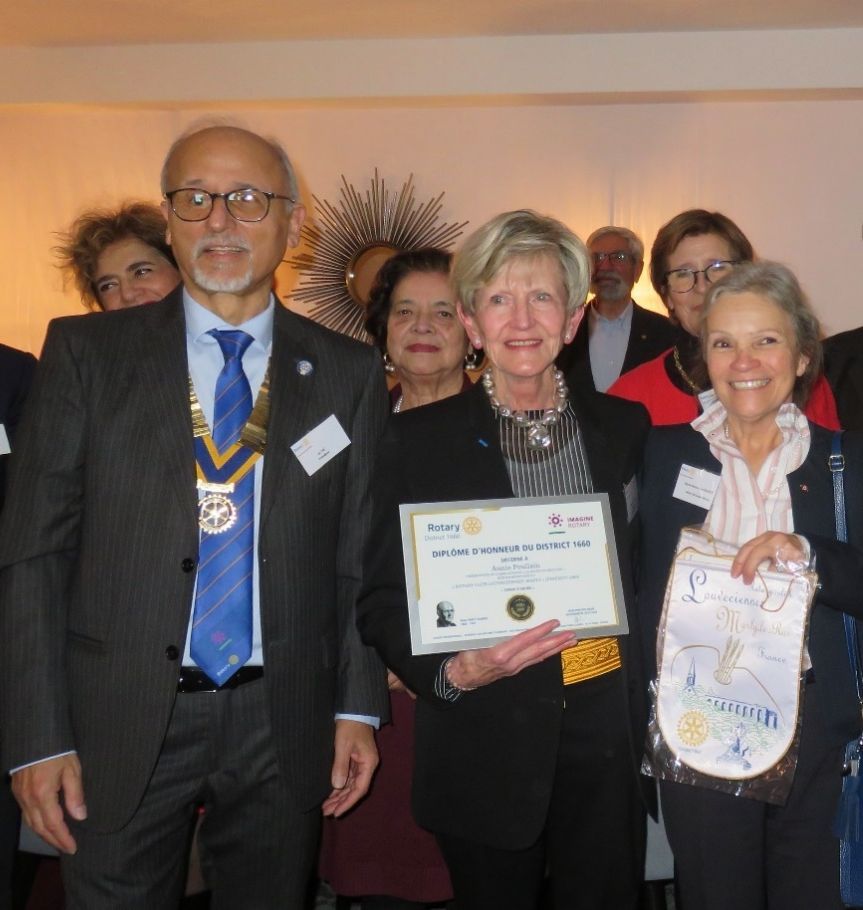 Le Rotary-club de Louveciennes-Marly a organisé une soirée au restaurant « Les Chandelles » le 20 janvier 2023 au cours de laquelle un diplôme d’honneur a été remis à Madame Annie Poullain en reconnaissance de son action en tant que présidente de « La Roue de Secours » une association dédiée à la scolarisation d’enfants issus de familles défavorisées en Inde.